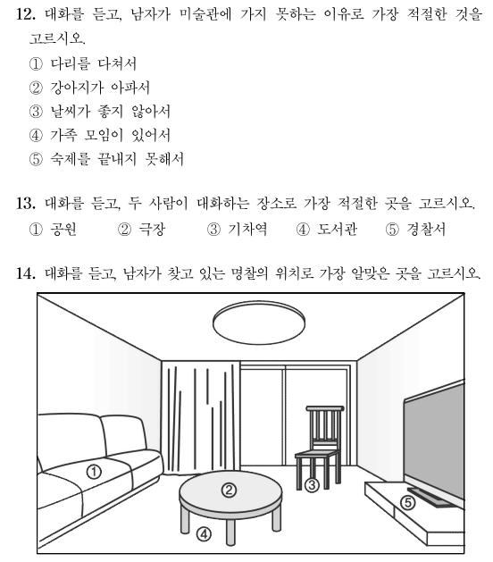 12번 대화를 듣고, 남자가 미술관에 가지 못하는 이유로 가장 적절한 것을고르시오.